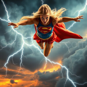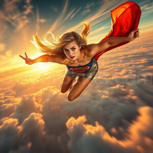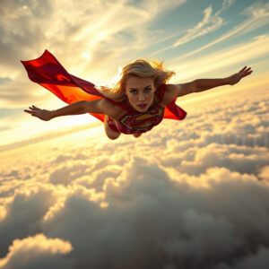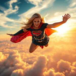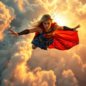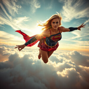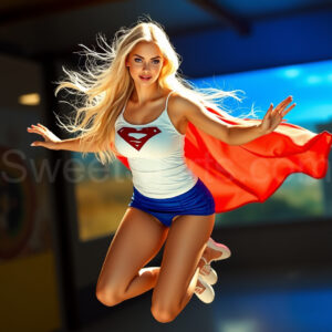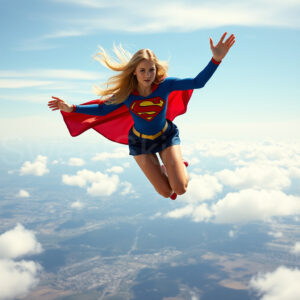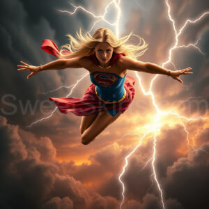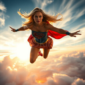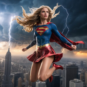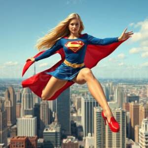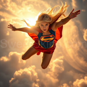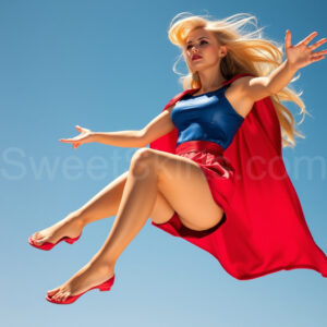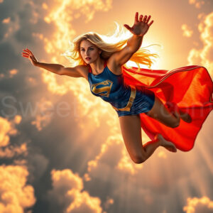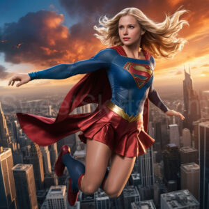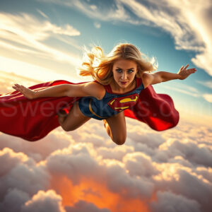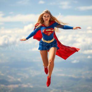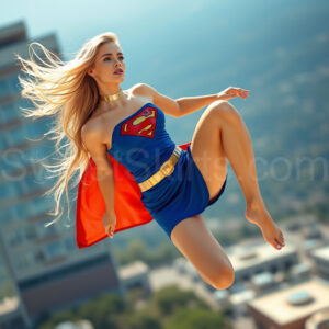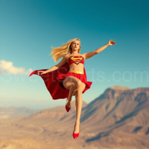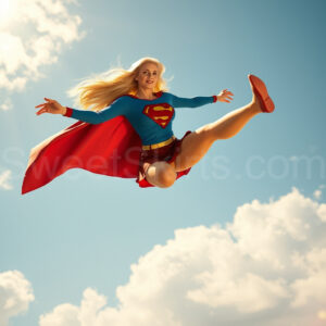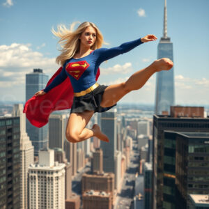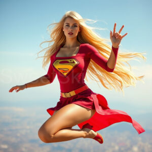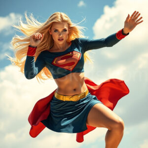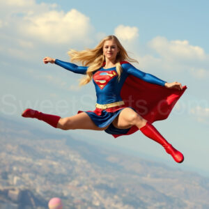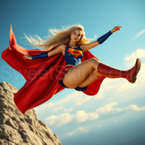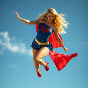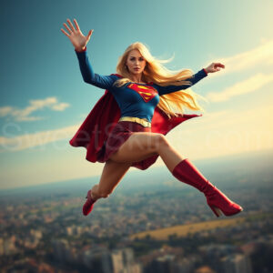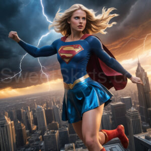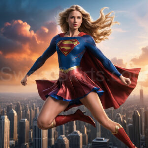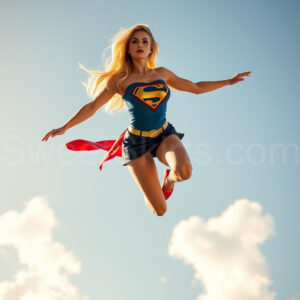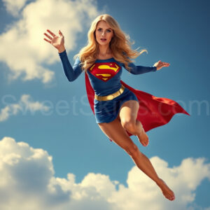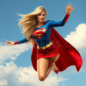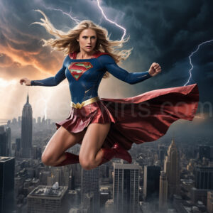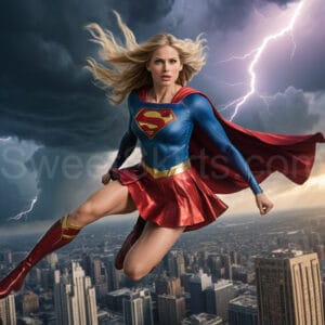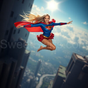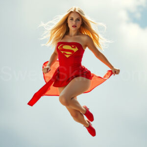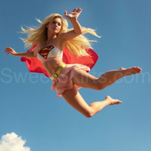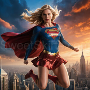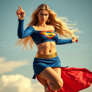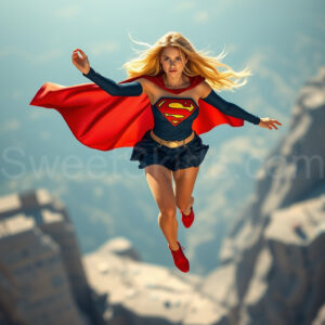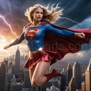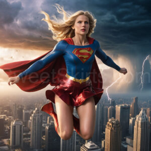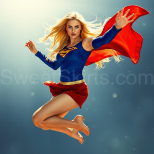 Experience the breathtaking imagery in this online gallery at SweetSkirts.com, featuring Supergirl as she soars through the sky, adorned in a daring, ultra-short flying skirt that captures both her strength and femininity. Each scene showcases her toned arms and legs, highlighting the athleticism and elegance of her form. With her body angled forward in a sleek, horizontal pose, Supergirl exemplifies dynamic movement—arms outstretched and legs fully extended behind her, embodying the essence of speed and agility. The dramatic flutter of her ultra-short skirt in the fierce winds adds a captivating visual element, enhancing the overall impact of her powerful flight. Join us in celebrating this iconic hero in a collection that emphasizes both beauty and strength.